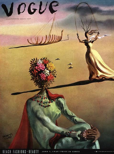 como si de algún modo, la vogue vendiera un mundo de ensueño, tan literalmente que incluso salvador dalí llego a ilustrar una portada para la revista.